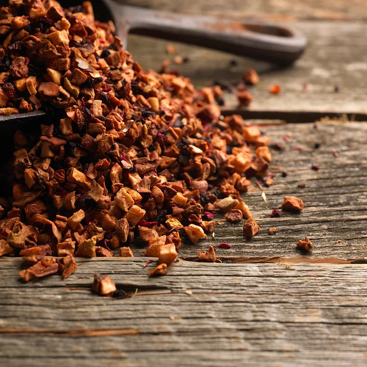 1 heaped teaspoon of Spritzy Rhubarb Tea per cup. Steep for 5-12 minutes at 100° C.